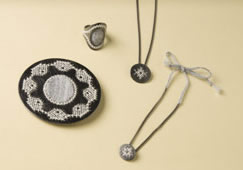 Caro Bartlings most recent jewellery-series oLeni is named after her two grandmothers and inspired by their thrift and heedfulness. They taught her to not only care for fellow beings but also for the things that surround us. All their belongings were handled with care, darned, mended and repaired if necessary. Admiring this appreciation and knowing that today we mostly use, destroy and replace things, Caro designed brooche-necklace and ring-bracelet combinations made of embroidered and “darned” silver.